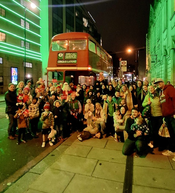 As we pulled up to Oxford Street, we were met with a truly magical moment, Father Christmas himself was waiting at the bus stop! With his trademark “ho ho ho!”, he jumped aboard, leading the bus in festive songs, listening to stories of how good the children had been all year, and giving out gifts to every child. His presence lit up the bus almost as much as the sparkling lights of London!